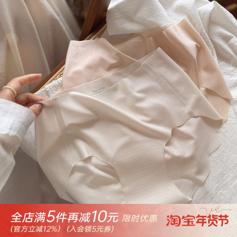 日系冰丝无痕一片式内裤女中腰超薄少女丝滑可爱甜美透气三角裤夏