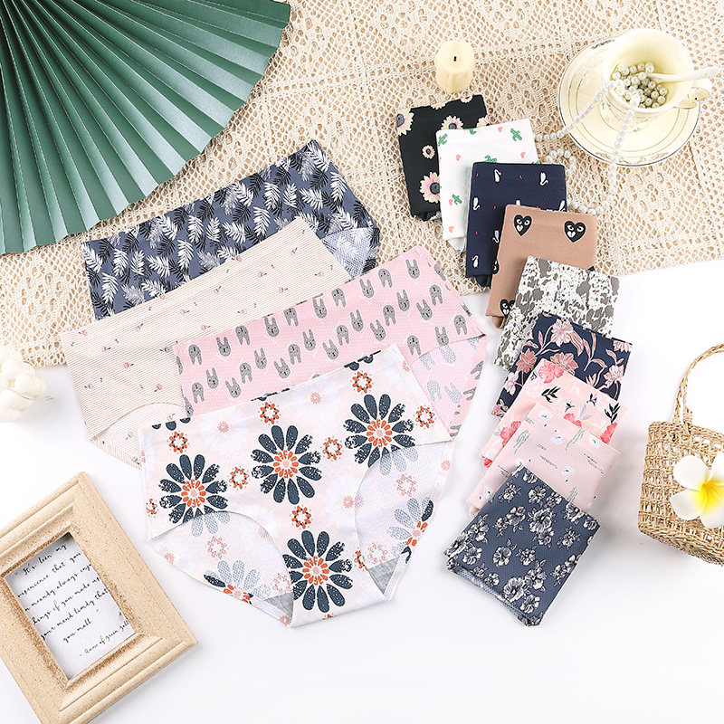 爆款冰丝无痕一片式内裤女士舒适中腰纯棉底裆少女三角裤大码厂家