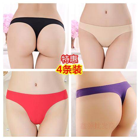 无痕丁字裤冰丝一片式内裤隐形T裤诱惑女士性感内裤纯棉裆钉子裤