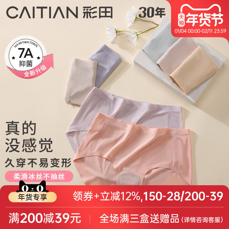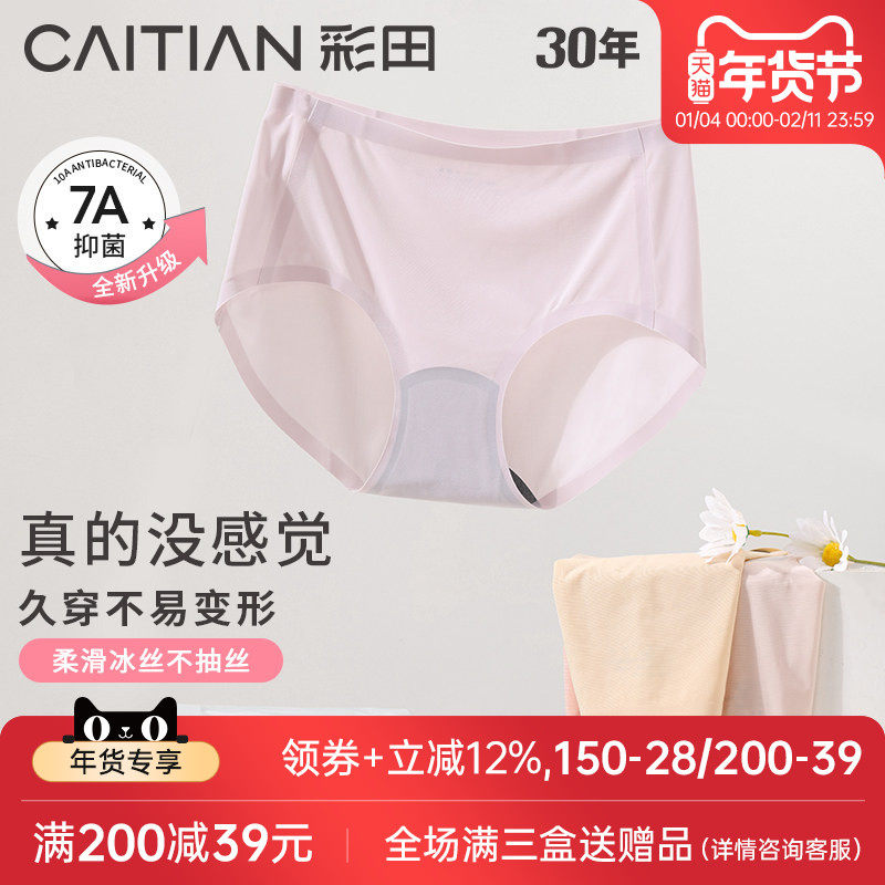 彩田中腰纯色无痕一片式内裤女抗菌底裆透气少女士冰丝大码三角裤