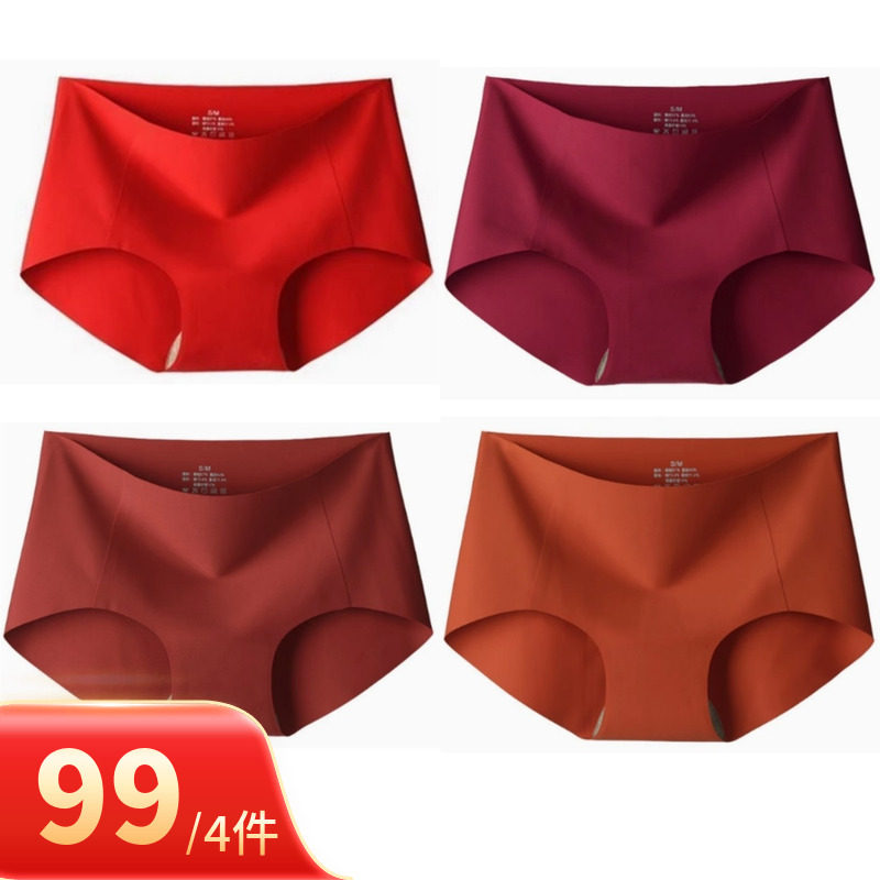 本命年红色内裤光面无痕内裤女高腰收腹平角裤中腰裤一片式内裤头