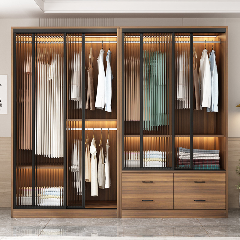 衣柜家用卧室长虹玻璃定制儿童柜子出租房用轻奢小户型推拉门衣橱