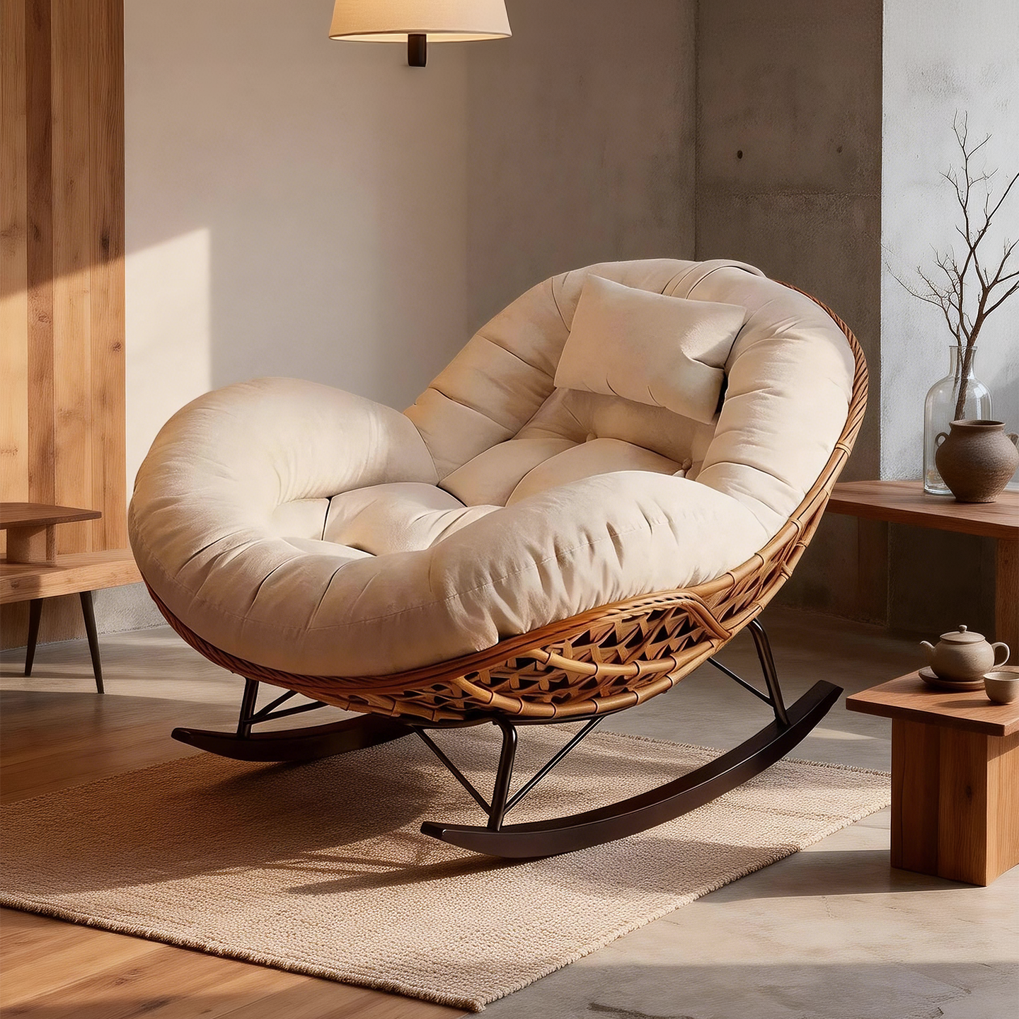 摇椅躺椅懒人沙发侘寂风阳台藤编沙发椅子家用客厅网红户外摇摇椅