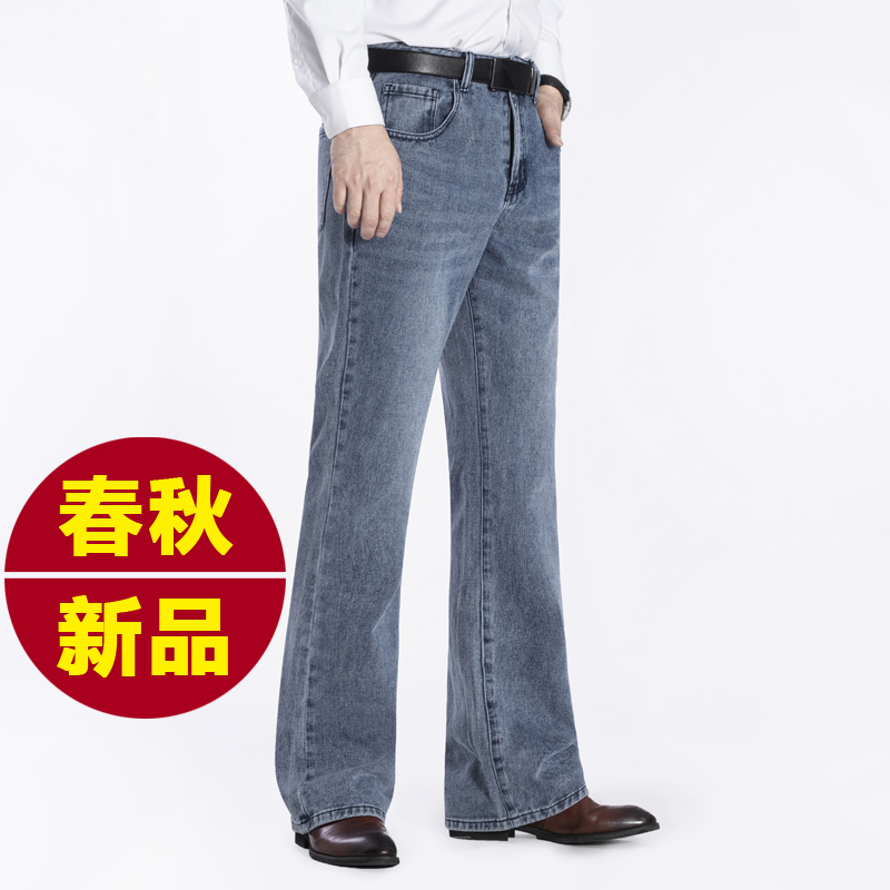 80年代大喇叭裤男高腰弹力大脚裤男士男款复古牛仔裤长裤舞裤厚