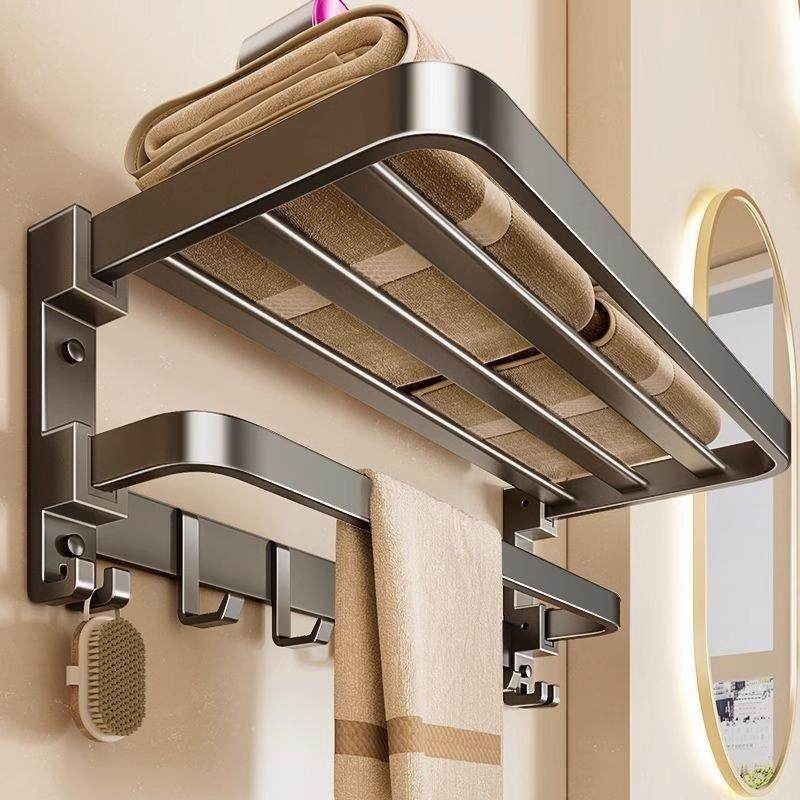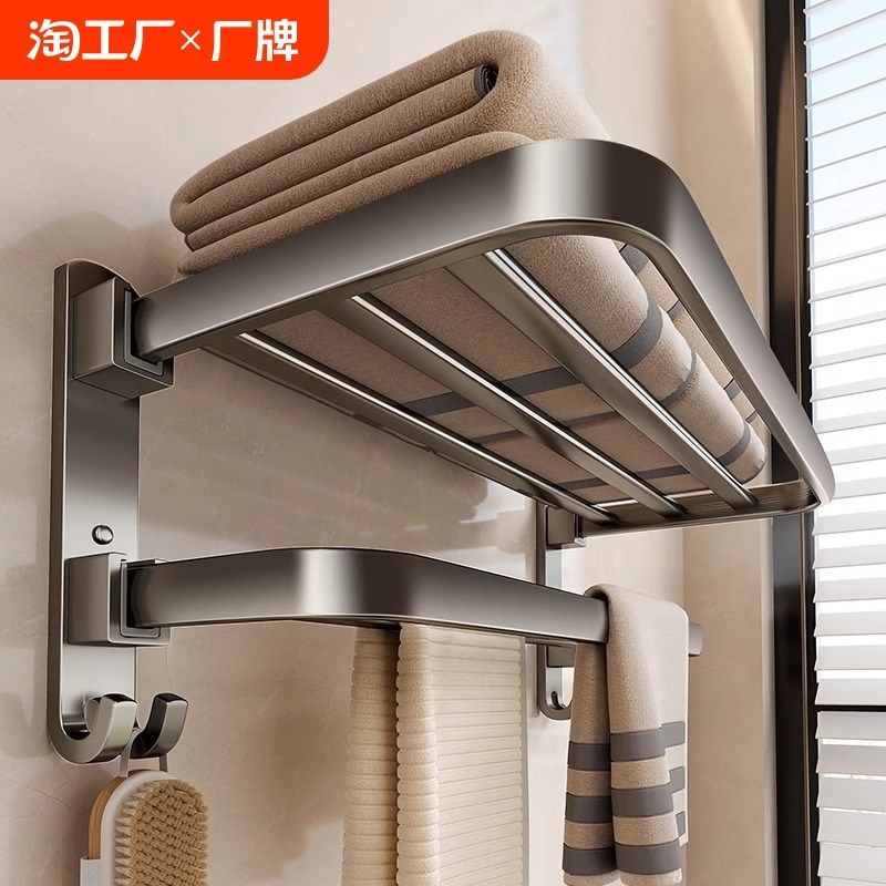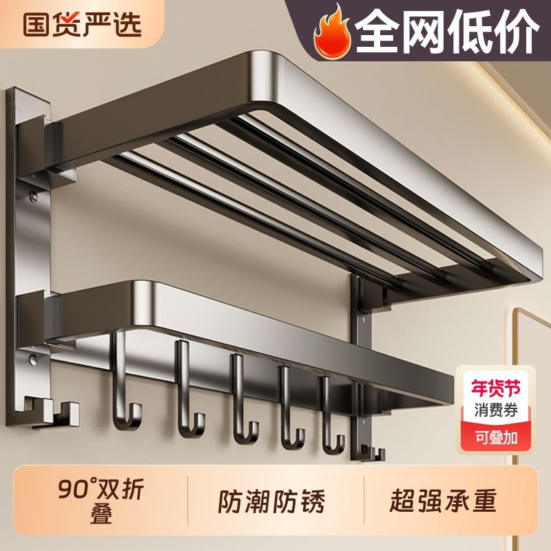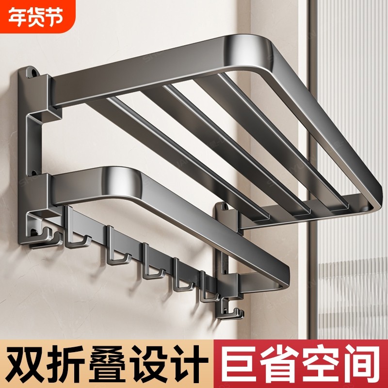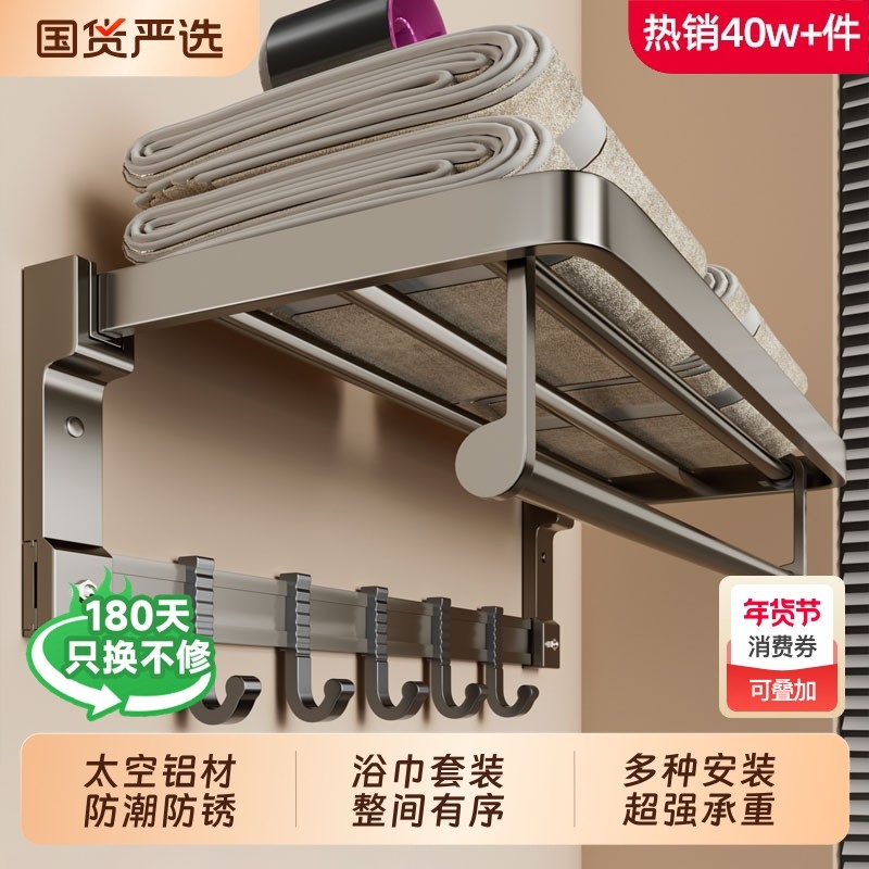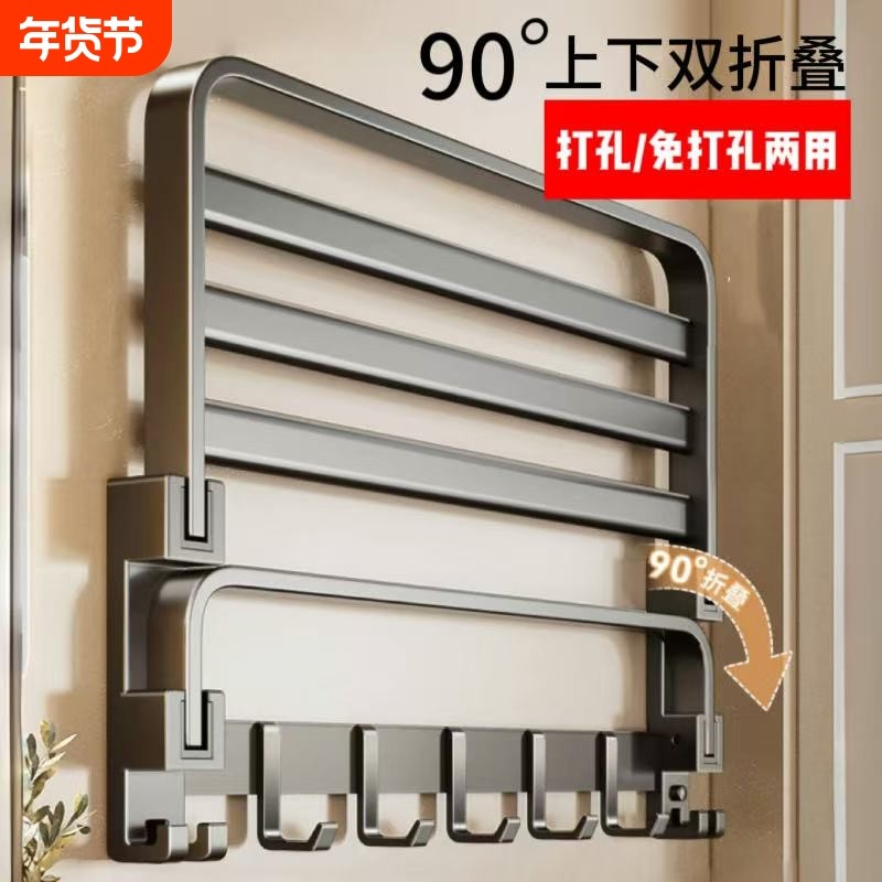 毛巾架卫生间免打孔浴巾架一体挂架套件厕所浴室架子置物架太空铝