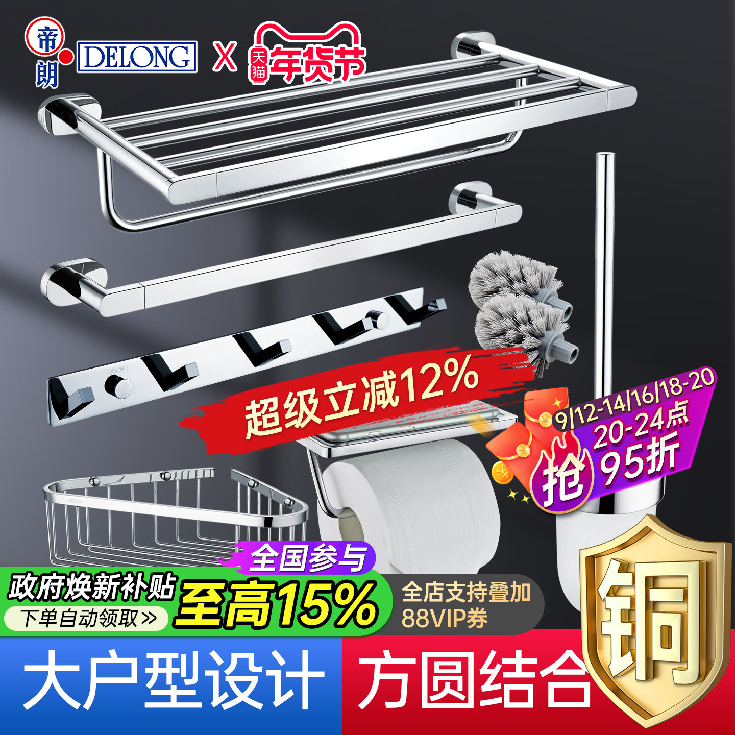 帝朗全铜毛巾架套装浴室架子置物架简约卫生间打孔浴巾架卫浴挂件