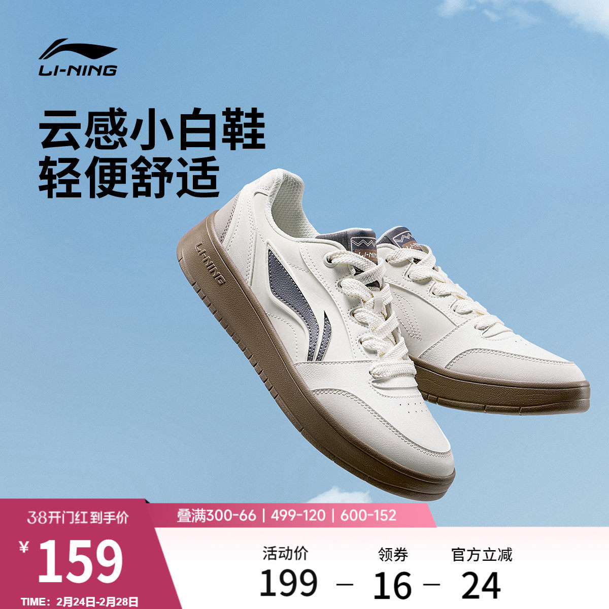 李宁月白2 | 板鞋男款春季复古百搭黑色休闲鞋情侣白色运动鞋女鞋