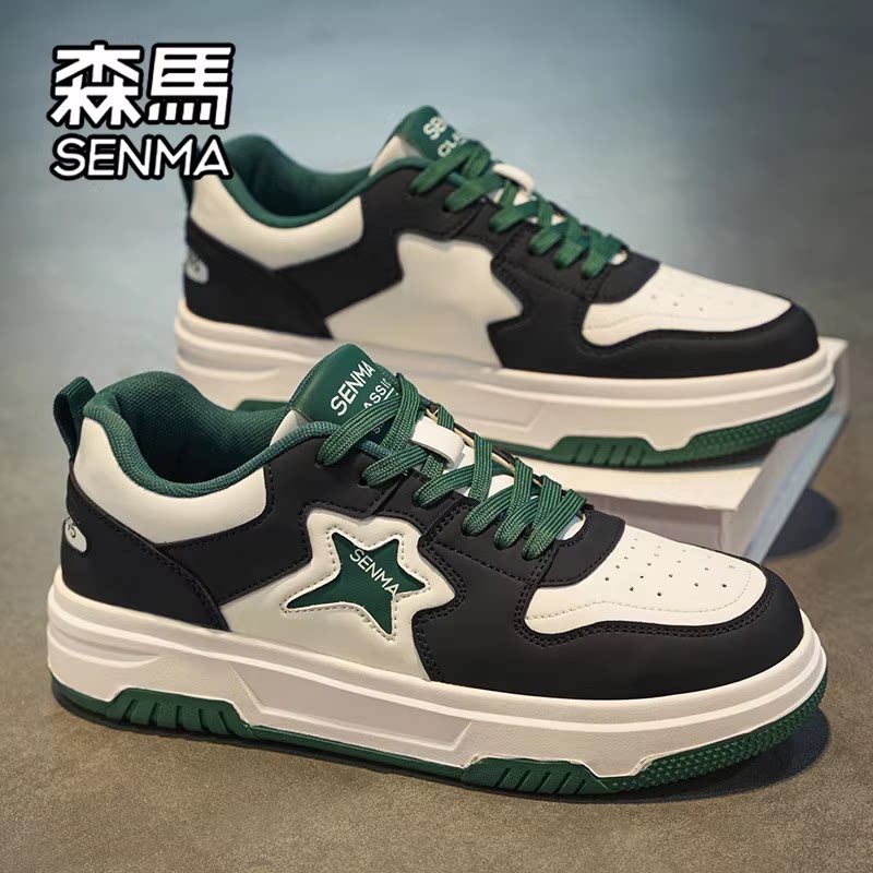 森马男鞋春季皮面防水百搭休闲小众板鞋青少年低帮运动增高小白鞋