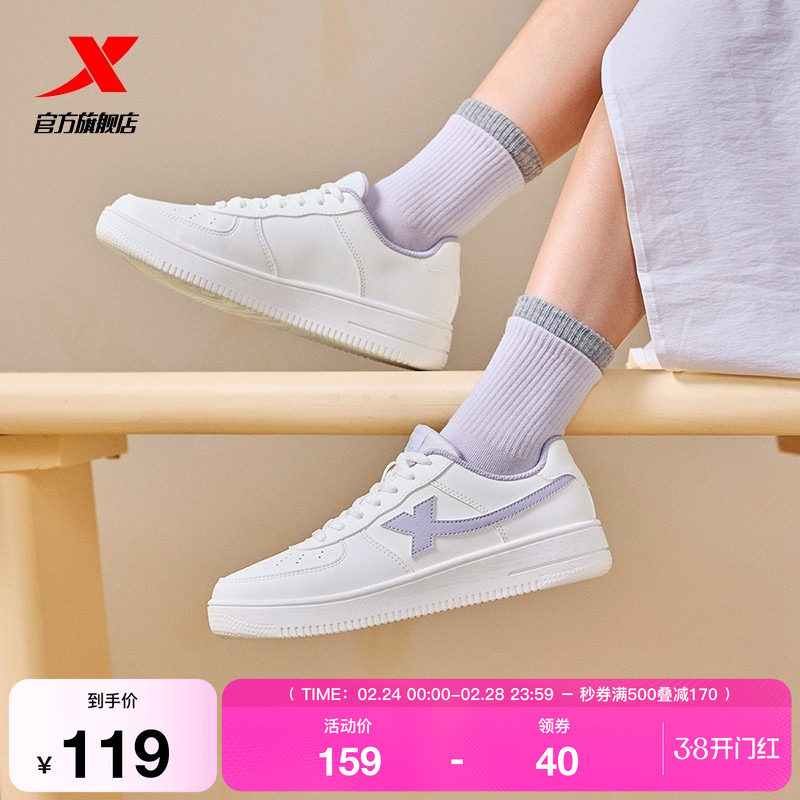 特步小白鞋女鞋春季情侣百搭休闲鞋子男鞋空军一号厚底运动鞋板鞋