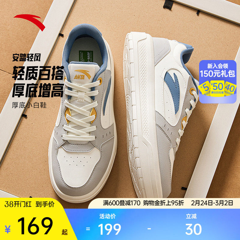 安踏轻风丨经典男板鞋轻便时尚增高厚底休闲鞋春季新款百搭运动鞋