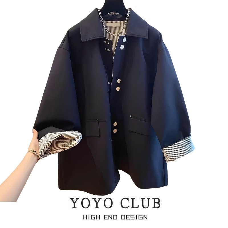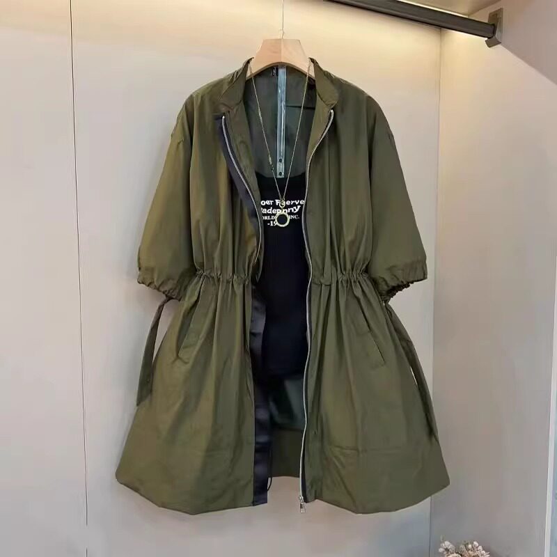休闲时尚大码外套女装春季新款欧货立领五分袖宽松显瘦中长款外套