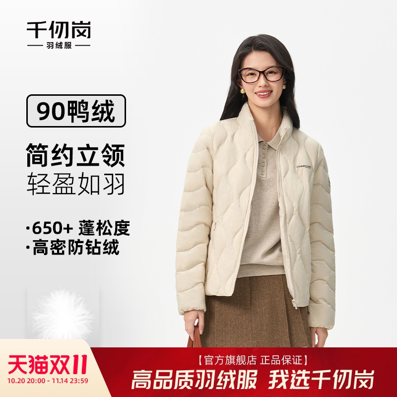 千仞岗2025秋冬新款羽绒服短款立领纯色简约H版型保暖大码外套女