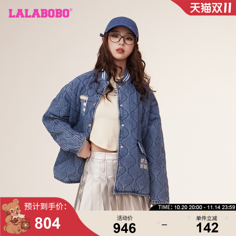 LALABOBO秋季休闲设计风复古运动棉服牛仔大码外套女|LBCC-WSMW11