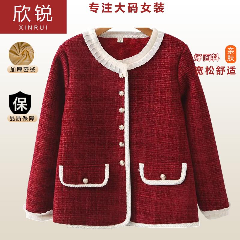 胖妈妈小香风大码外套女装200斤秋冬款加绒加厚外套新款上衣开衫