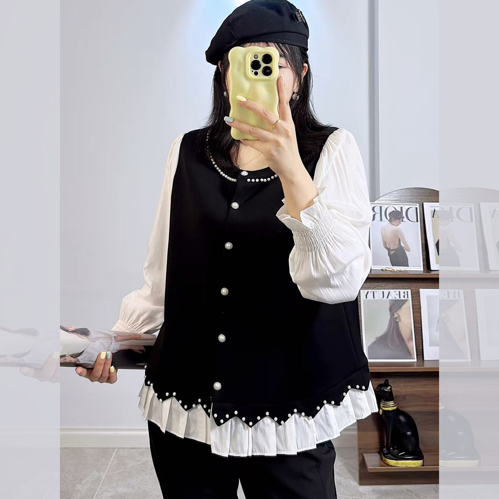 别致法式花边拼接特大码外套女装2025秋新款胖mm宽松精致上衣