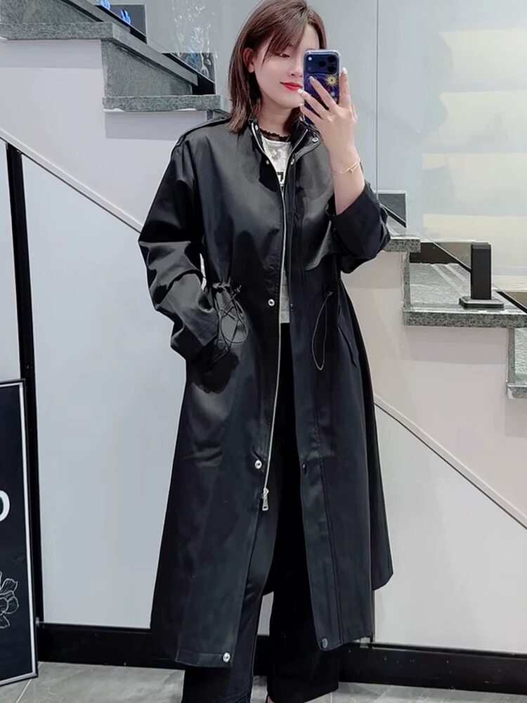 伊琳贝儿正流行中长款黑色皮衣大码外套女2026春新款超火风衣5590