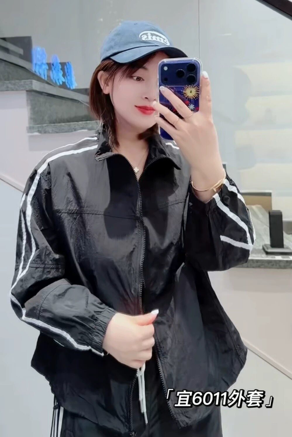 宜语析6011春加大码外套女 织带防晒衣宽松遮肉显瘦运动风开衫