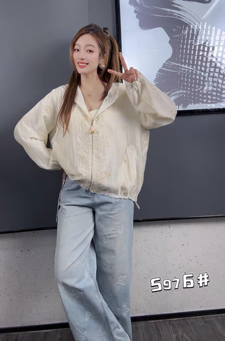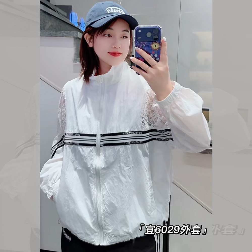 妃儿红5976春夏加大码外套女 蕾丝拼接连帽时尚亮片宽松防晒服