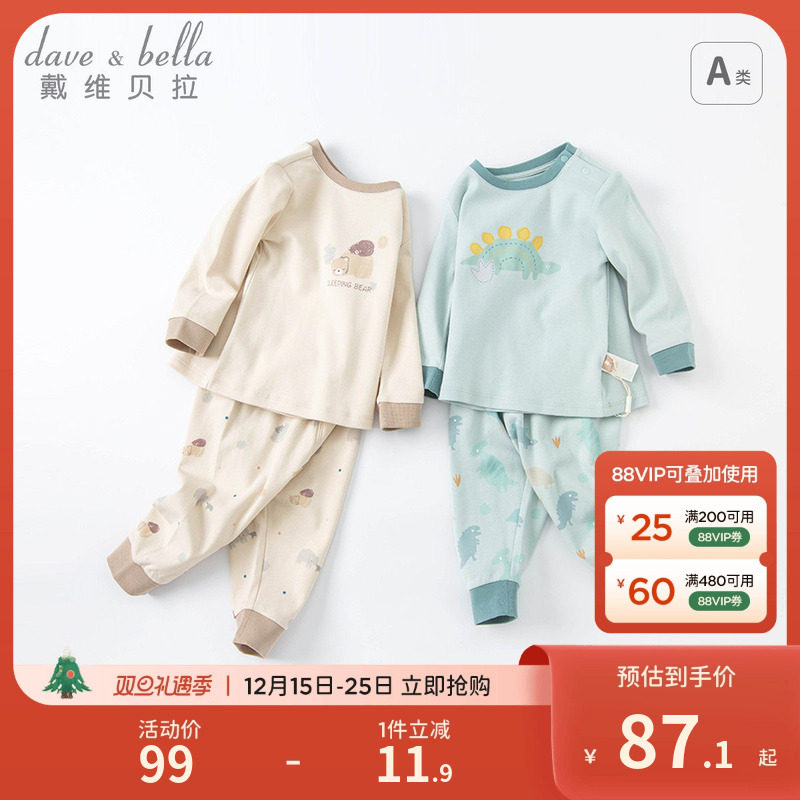 戴维贝拉秋衣秋裤儿童内衣套装保暖婴儿男童家居服男宝宝纯棉A类