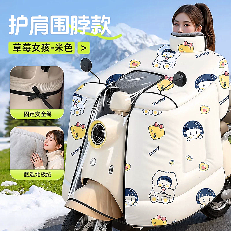 电动车保暖挡风被冬季加绒加厚大护肩冬天电瓶车亲子挡风防水护罩