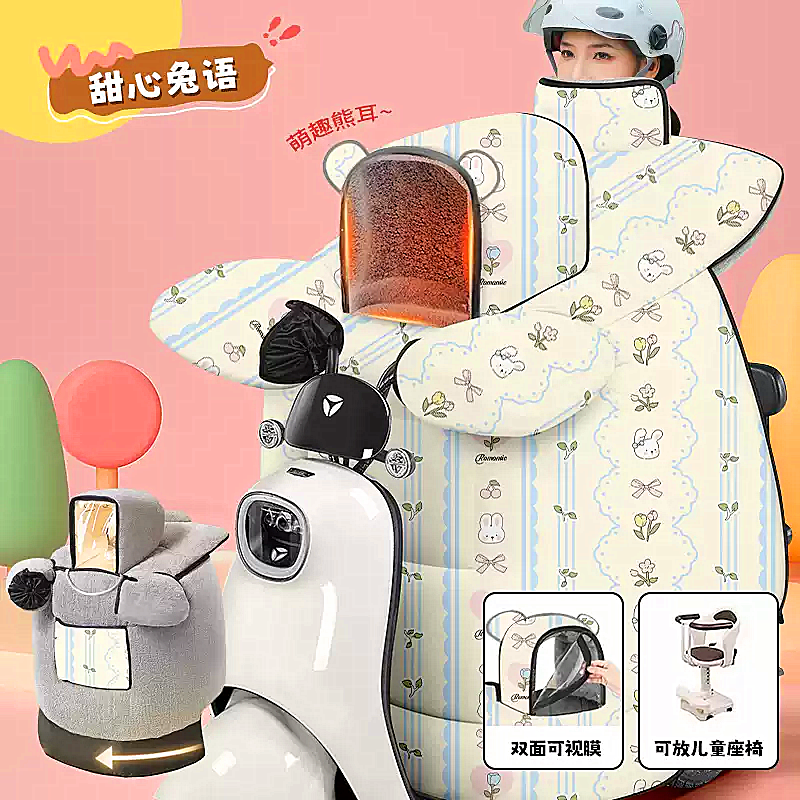 电动车挡风被冬季分体亲子加绒加厚电瓶摩托车保暖防风罩四季通用