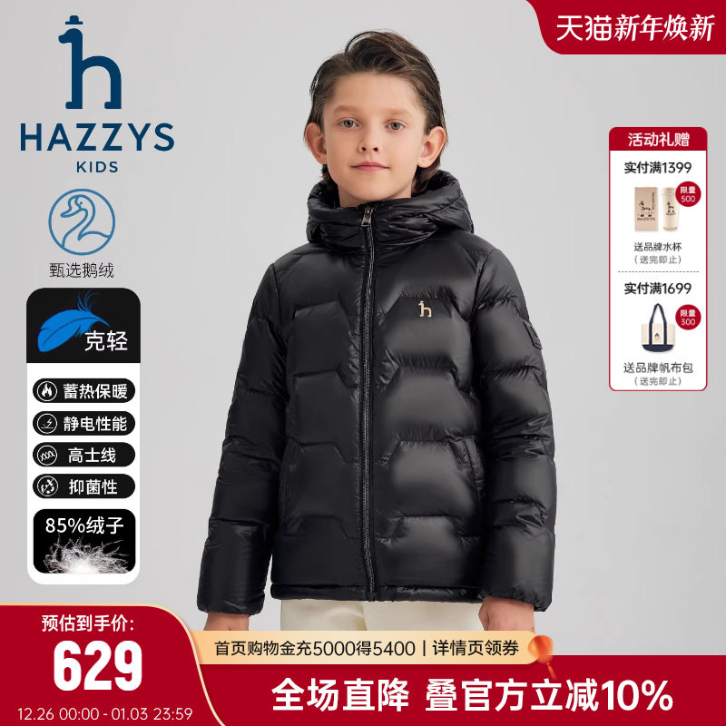 hazzys哈吉斯童装男女童鹅绒羽绒服25冬新蓄热抑菌保暖外套