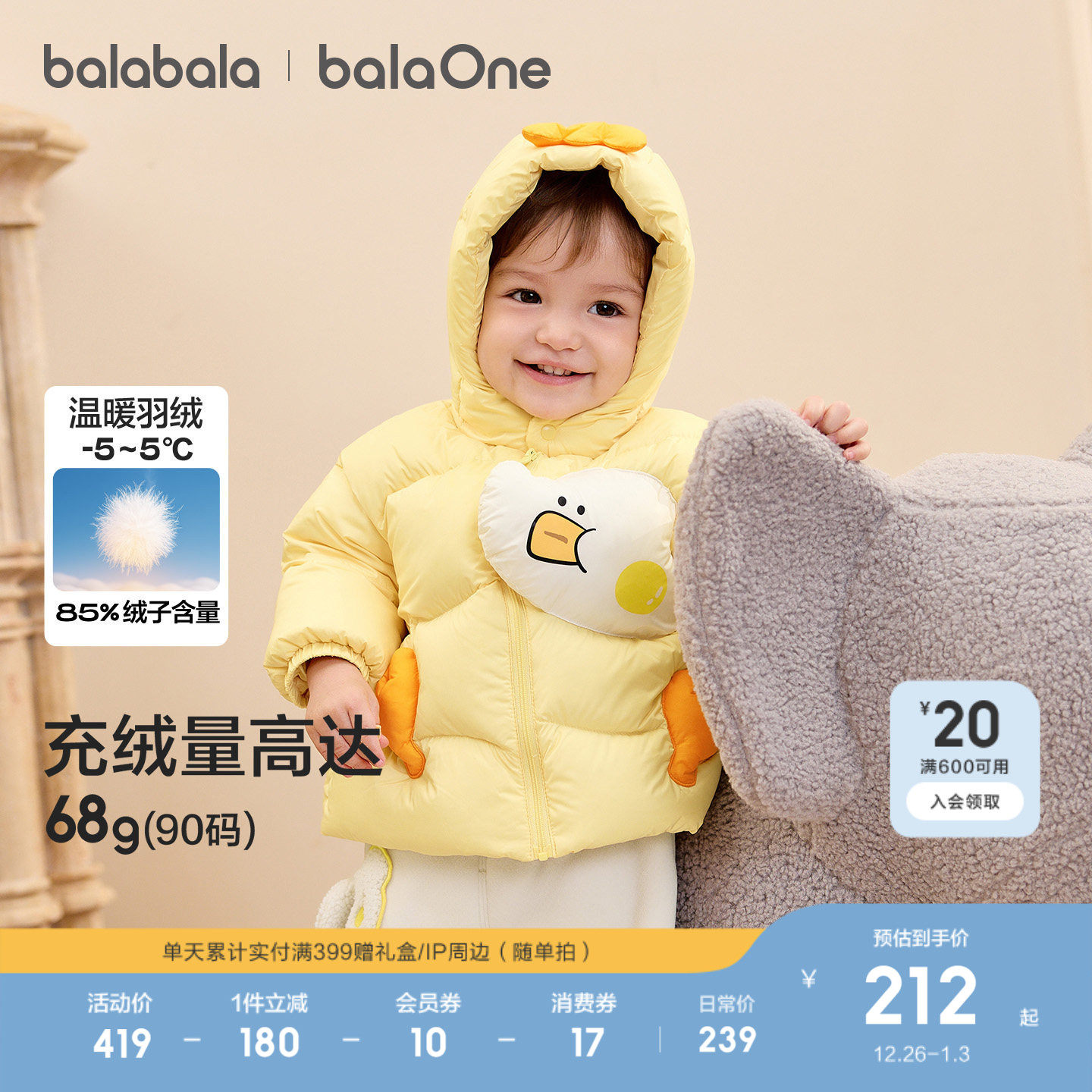 巴拉巴拉童装婴儿羽绒服女男童外套冬装加厚保暖宝宝儿童2025新款