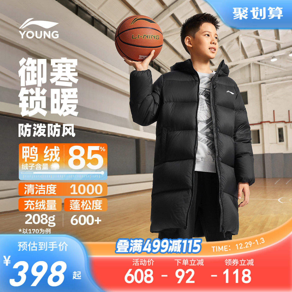 李宁儿童中长款羽绒服加厚保暖内胆2025新款冬季男童装女外套冬装