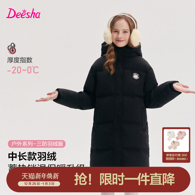 笛莎官方旗舰童装女童长款羽绒服秋冬季新款儿童极寒保暖加厚外套