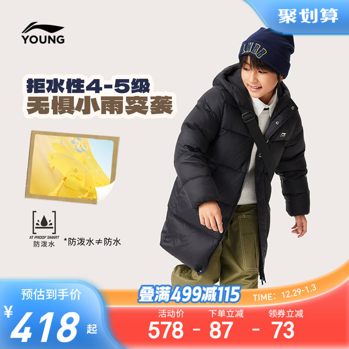 李宁儿童中长款羽绒服2025新款冬季男童装女外套青少年防泼水冬装