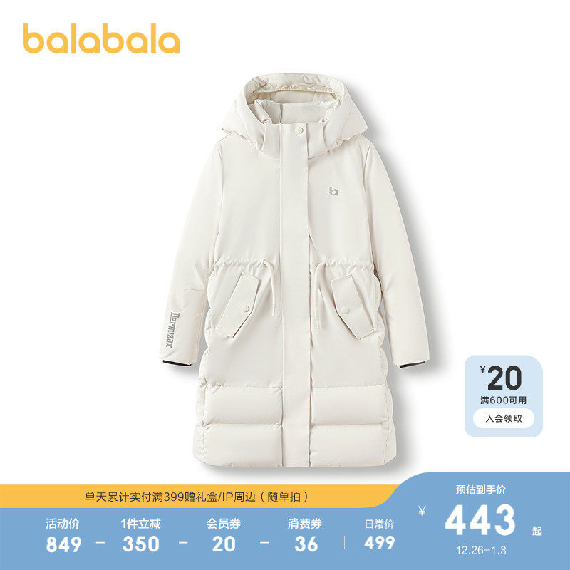 巴拉巴拉儿童长款羽绒服冬装童装女外套户外保暖防护舒适加厚上衣