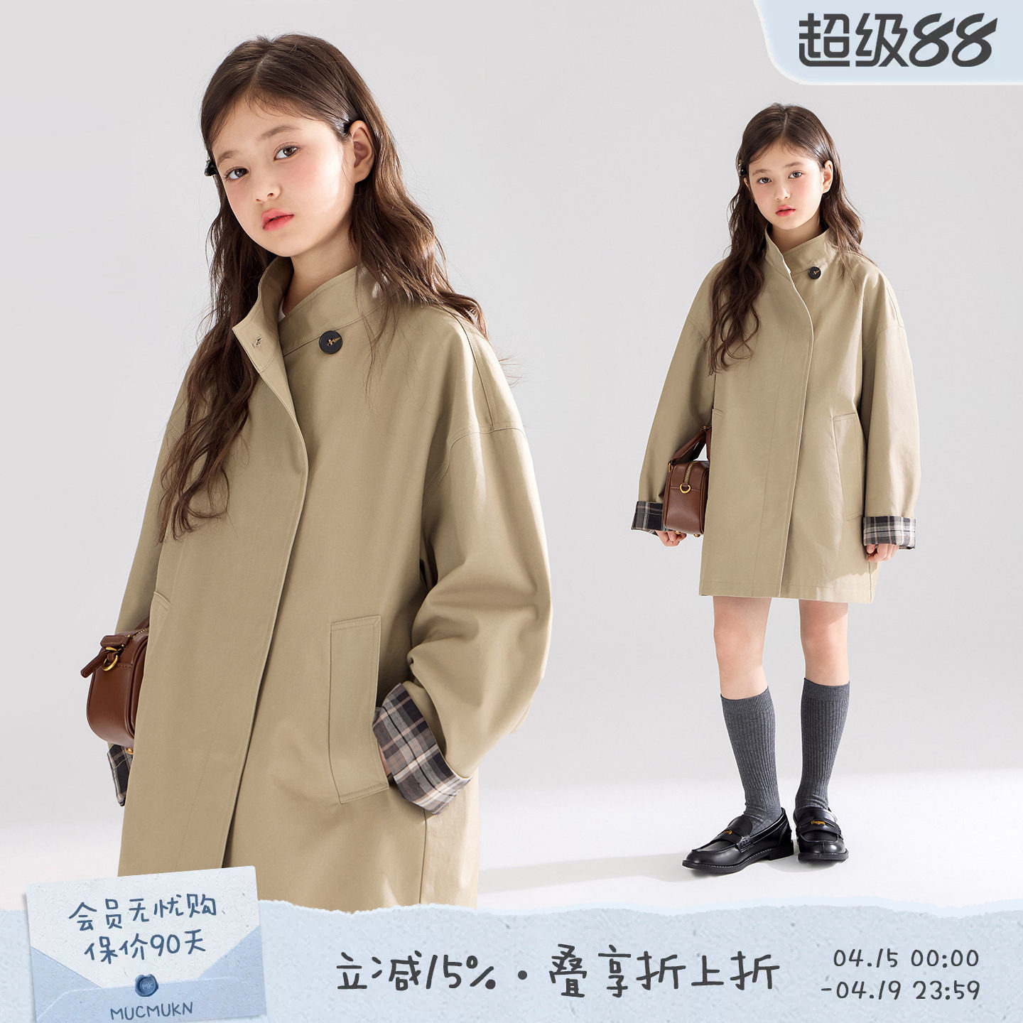 MUCMUKN 童装春装英伦风复古风衣夹克质感双面斜纹外套女大童