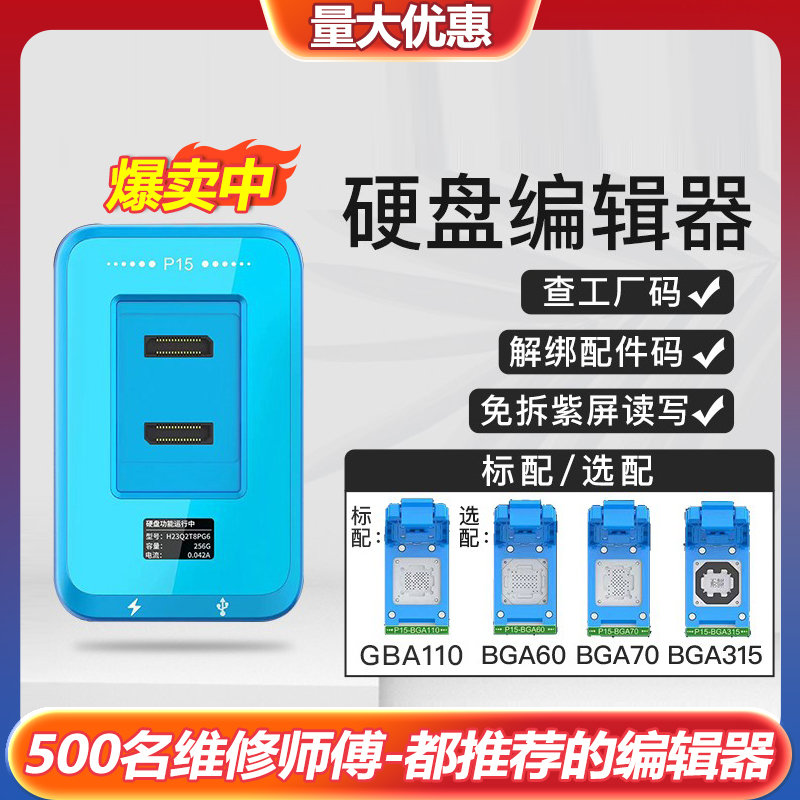 精诚P15硬盘测试架编程器修复仪BGA6070/110/315硬盘读写查码紫屏