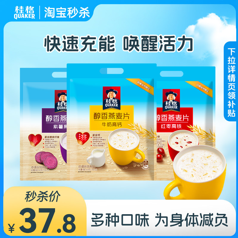 【秒杀】桂格燕麦片特浓牛奶红枣醇香540g*2袋装速食冲饮营养燕麦