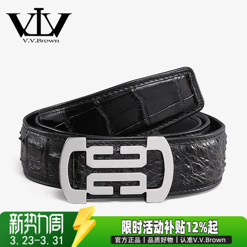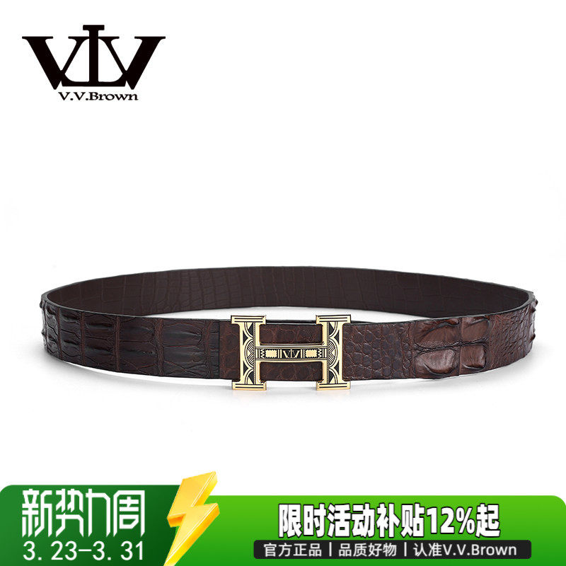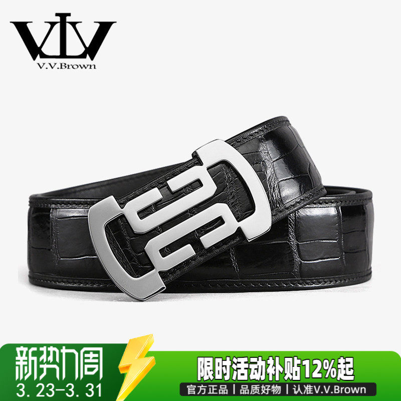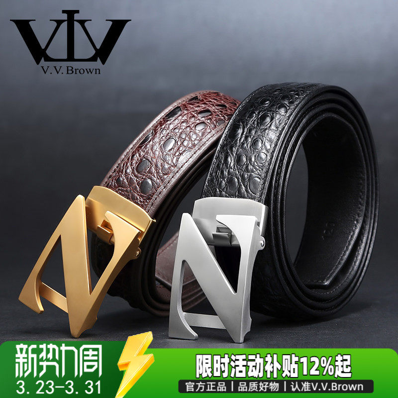 V.V.Brown正品高档男士皮带真皮正宗鳄鱼皮腰带男轻奢自动扣原创D