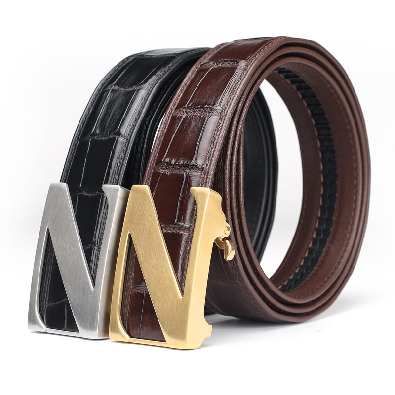 V.V.Brown正宗鳄鱼皮皮带男款Z字字母自动扣腰带真皮轻奢百搭裤带