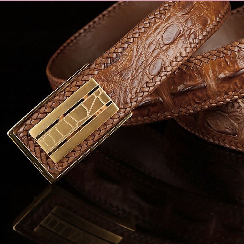 正品 泰国鳄鱼皮腰带时尚平滑扣肚皮编织真皮正宗男士鳄鱼皮皮带
