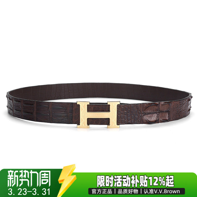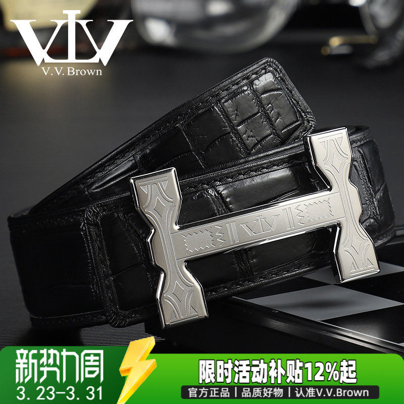 V.V.Brown正宗鳄鱼皮肚皮腰带男士真皮高档H扣轻奢板扣男皮带正品