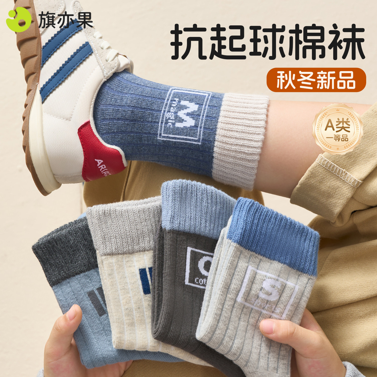 「秋冬款」儿童袜子纯棉A类男童中筒袜无骨抗菌柔软宝宝秋冬吸汗