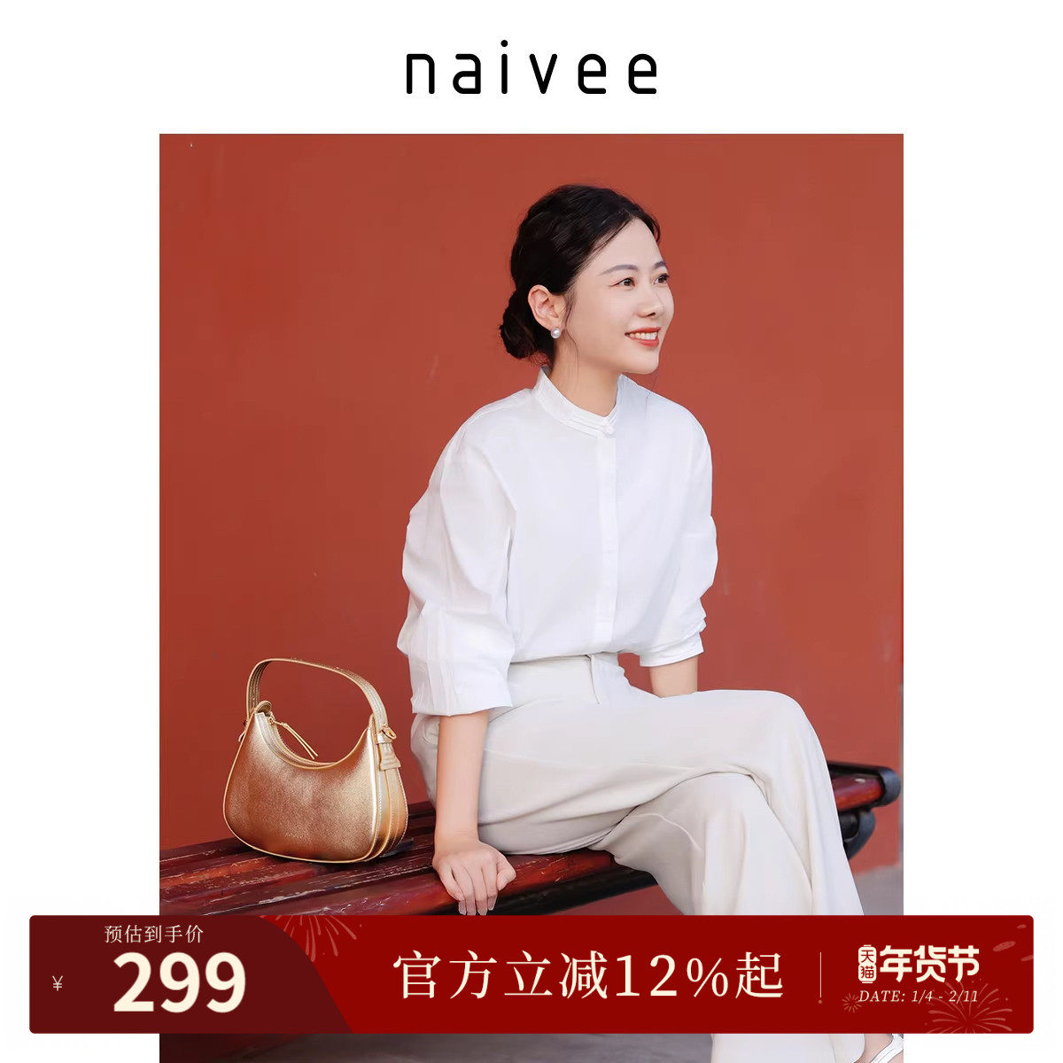 KBNE法式白色衬衫立领磨毛衬衣女装25秋冬季新款通勤休闲长袖上衣