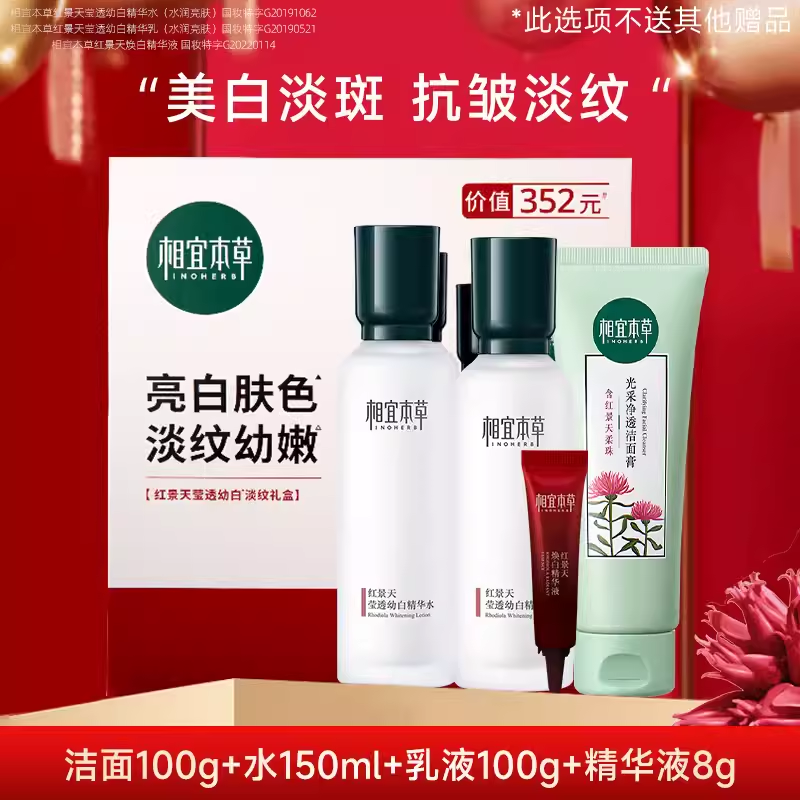 相宜本草红景天精华水乳液洗面奶套装补水保湿美白淡斑官方正品女
