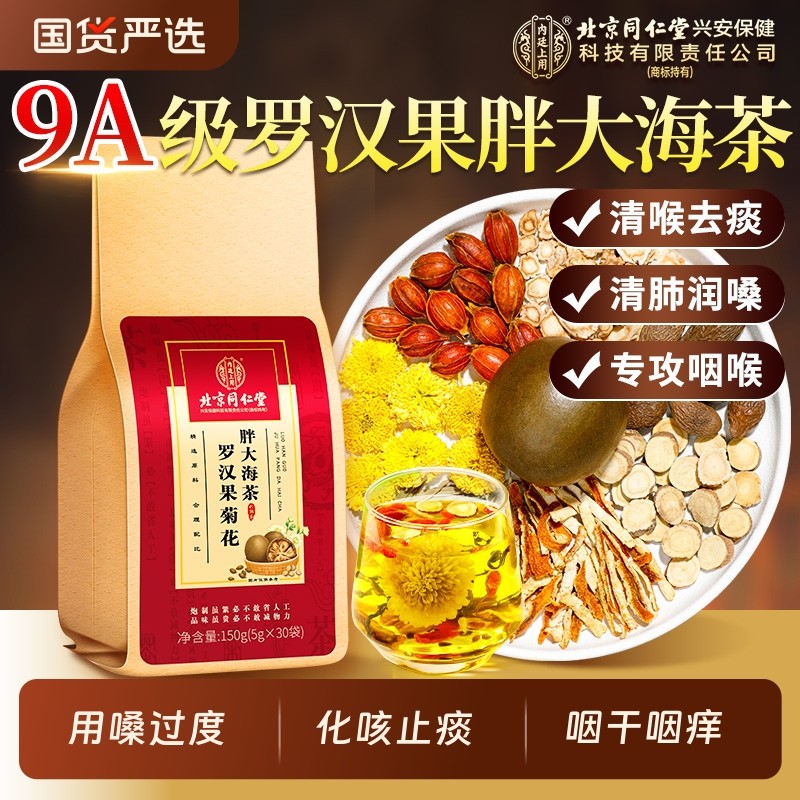北京同仁堂胖大海罗汉果咽炎茶清肺护嗓菊花茶止咳化痰养生茶正品