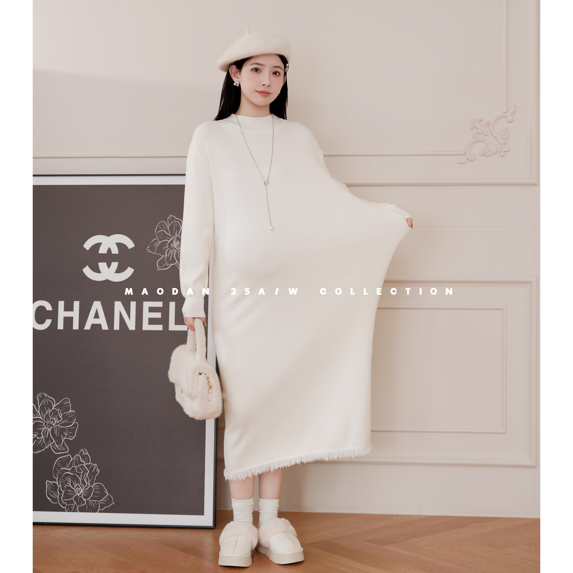 猫单【蛋壳泡芙】娜娜的孕期穿搭孕妇装秋冬新长袖气质针织连衣裙