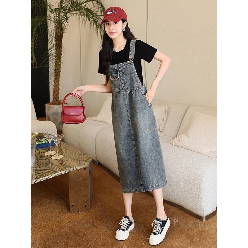 复古牛仔背带裙女春秋2025新款中长款宽松显瘦开叉盐系减龄连衣裙