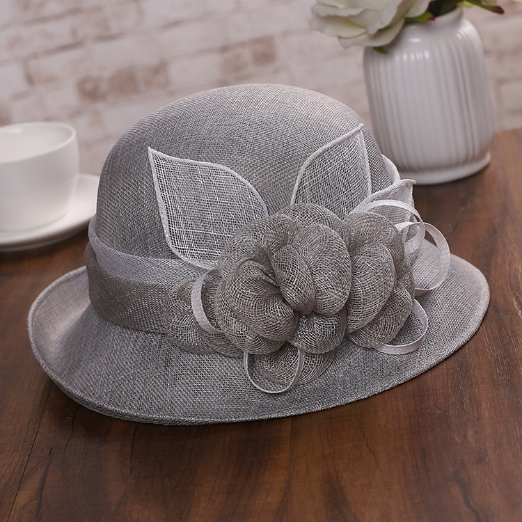英伦复古帽子女春夏天新款优雅花朵亚麻帽防晒遮阳帽麻纱卷边礼帽