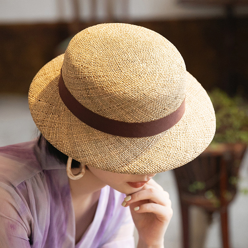 高级老钱风平檐草帽夏天出游度假礼帽复古法式时尚沙滩遮阳帽子女