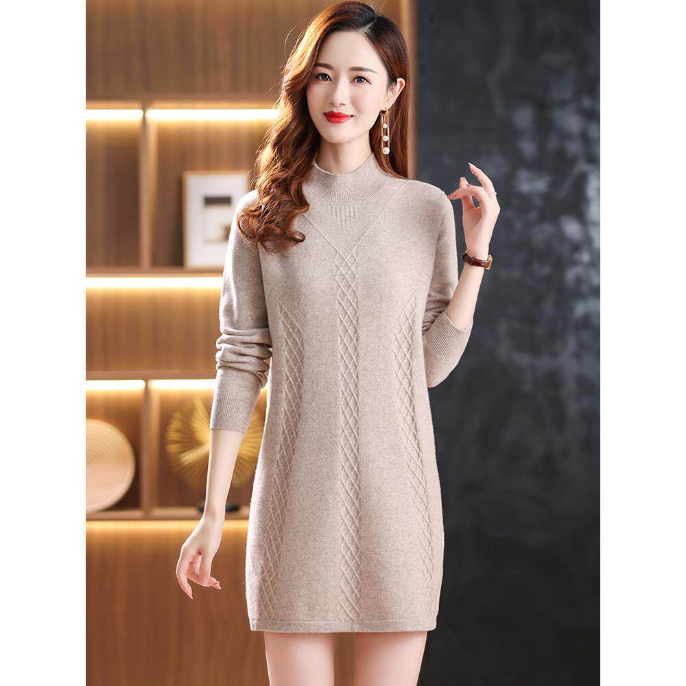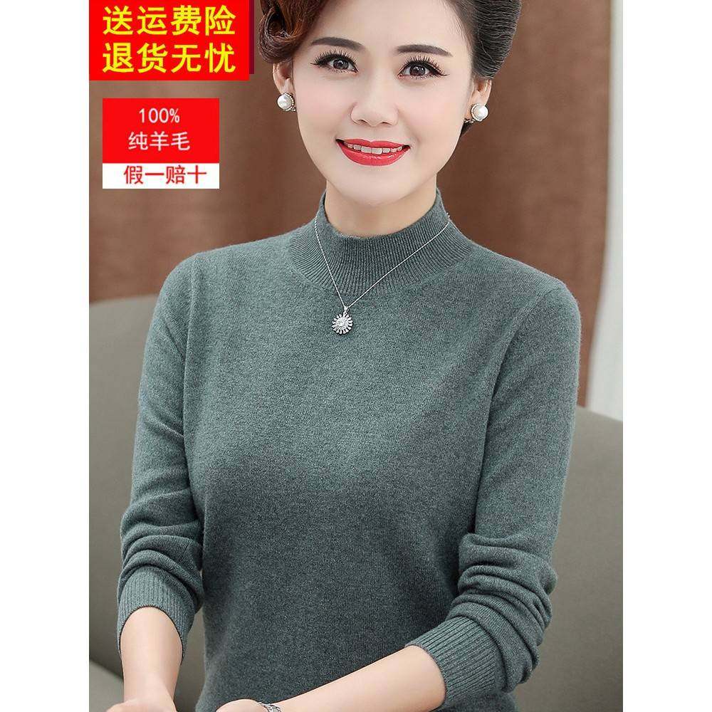 - 半高领纯色女羊毛衫