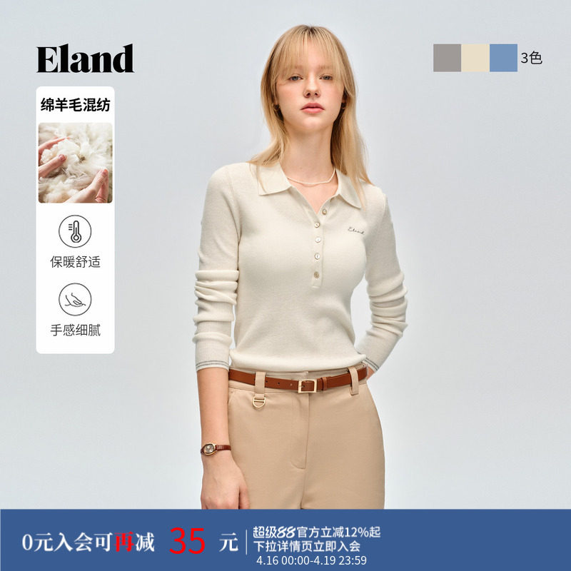 【绵羊毛】Eland衣恋毛衣女翻领长袖针织衫收腰上衣2026春季新款