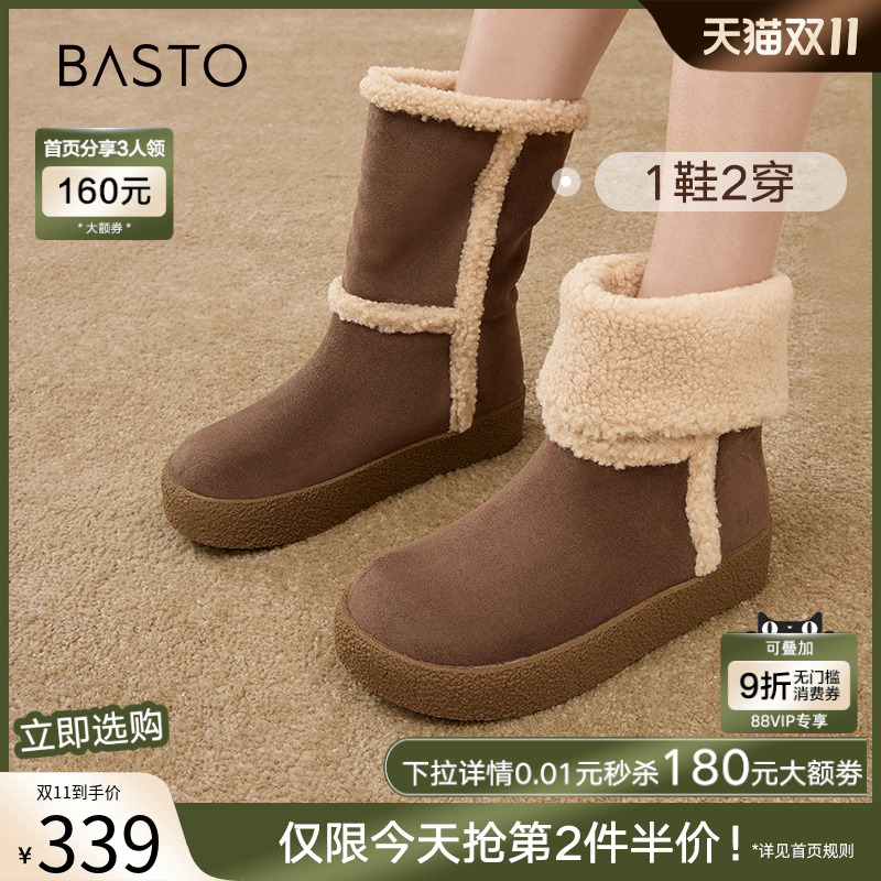 - 羊皮毛一体雪地靴短靴