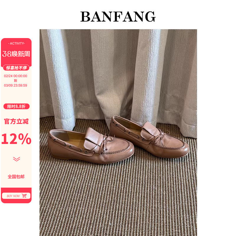BANFANG女鞋圆头平底软皮便士乐福鞋蝴蝶结胶粘豆豆鞋乐福鞋